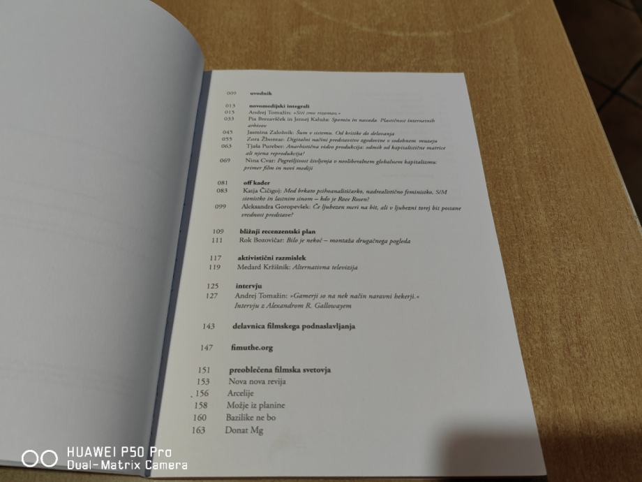 V njem boste našli poglobljene, znanstvene in strokovne članke o aktualnih problemih digitalizacije, filma, interneta. Brali boste lahko tudi o spremenjenih načinih nadzora oziroma kontrole v t.i. družbah nadzora; pa o presečišču dolg/kapitalizem/digitalno/analogno/filmski medij. V zborniku vas bo navduševal tudi intervju s svetovno priznanim teoretikom Alexandrom R. Gallowayem, s katerim se je pogovarjal Andrej Tomažin. Zbornik vas bo razveseljeval tudi z recenzijami in kratkimi zgodbami, ki so nastale v okviru skupinskega kreativno-filmskega pisanja.