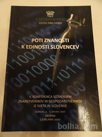Knjiga POTI ZNANOSTI K EDINOSTI SLOVENCEV, V. KONFERENCA SLOVENSKIH ZNANSTVENIKOV IN GOSPODARSTVENIKOV IZ SVETA IN SLOVENIJE, SVETOVNI SLOVENSKI KONGRES, LJ 2007, broširana, dobro ohranjena.