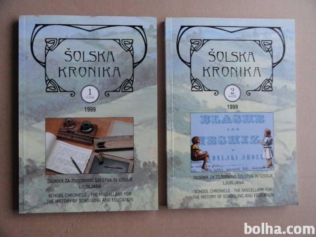 Knjigi ŠOLSKA KRONIKA 1 IN 2 LETNIK 1999, ZBORNIK ZA ZGODOVINO ŠOLSTVA IN VZGOJE, broširani, dobro ohranjeni, samo v kompletu obe za 10 eur.