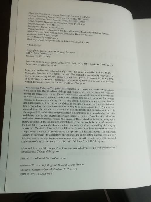 ATLS STUDENTS COURSE MANUAL V ANGLESKEM JEZIKU LETO 2012 CENA 35 EUR
