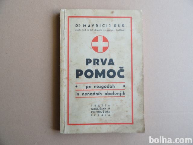 Knjiga PRVA POMOČ PRI NEZGODAH IN NENADNIH OBOLENJIH, MAVRICIJ RUS, LJ 1941, trde platnice, dobro ohranjena.