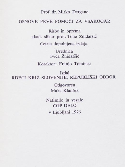 Mirko Derganc - OSNOVE PRVE POMOČI ZA VSAKOGAR, Ljubljana 1976,