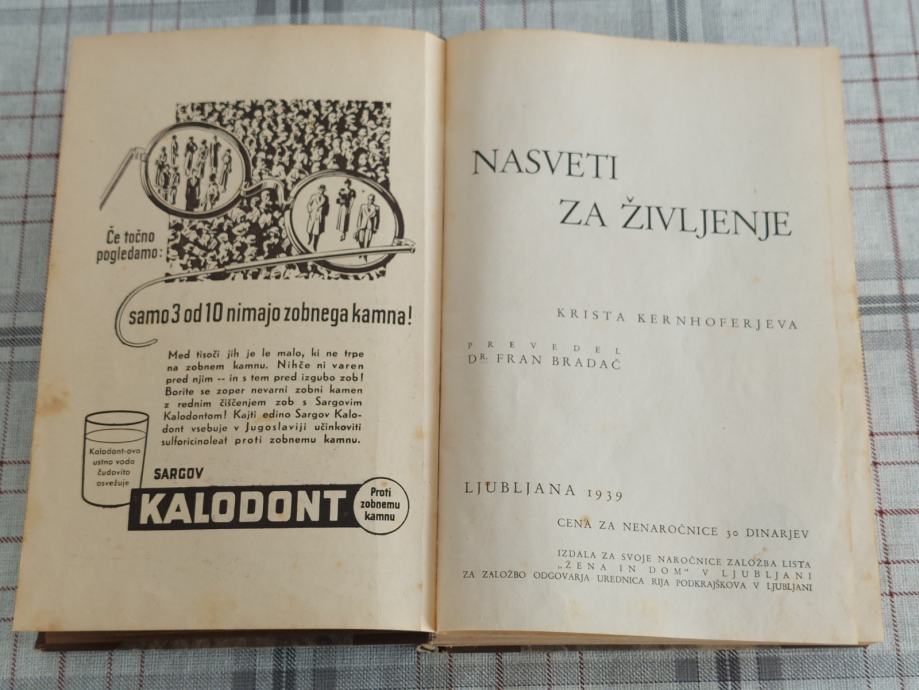 Prodam staro,lepo ohranjeno knjigo Nasveti za življenje,letnik 1939.