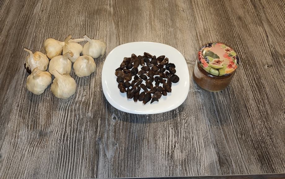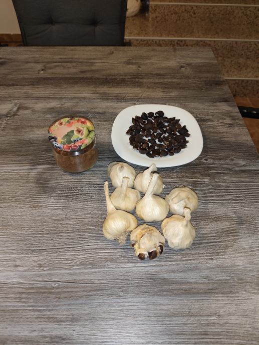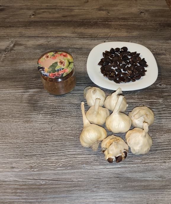 Črni česen je bogat z antioksidanti in spojinami, kot je S-alilcistein, in je znan po krepitvi imunosti, protivnetnih učinkih in podpori zdravja srca in krvnih žil, saj pomaga zniževati slab holesterol in trigliceride.