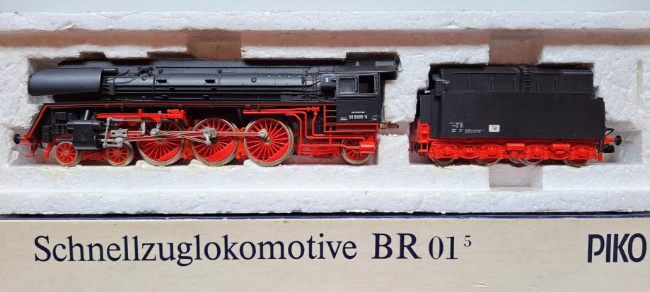 Super ohranjena PIKO parna lokomotiva BR 01 0505 6 z oljnim tenderjem, v original embalaži, imam še eno z številko BR 01 1512 1, ki ima drugačen design koles in tender z premogom.