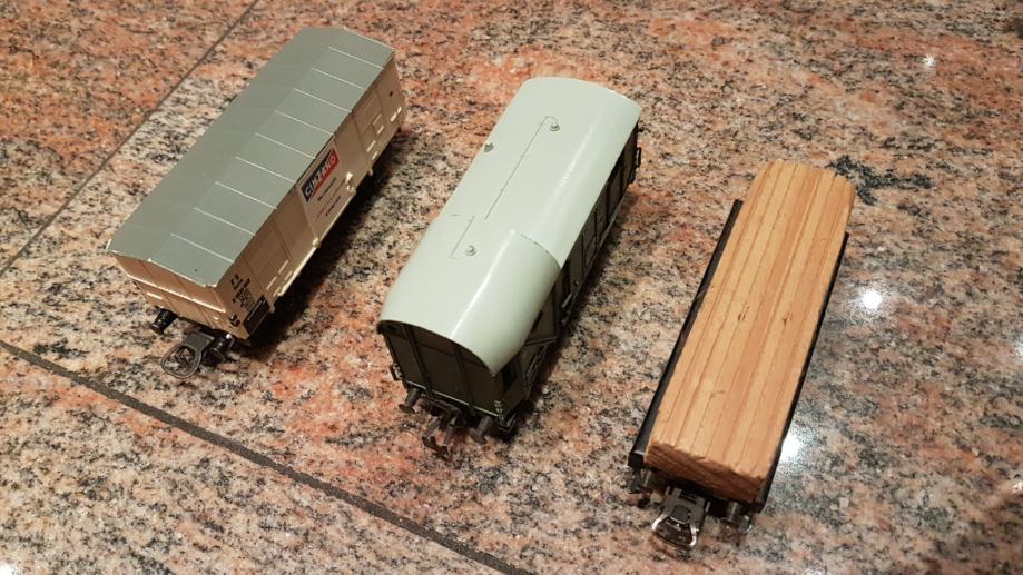 Prodam 2x PIKO vagona z kolesi za Marklin - zadnji vagon z lesom je star Marklinov vagon.