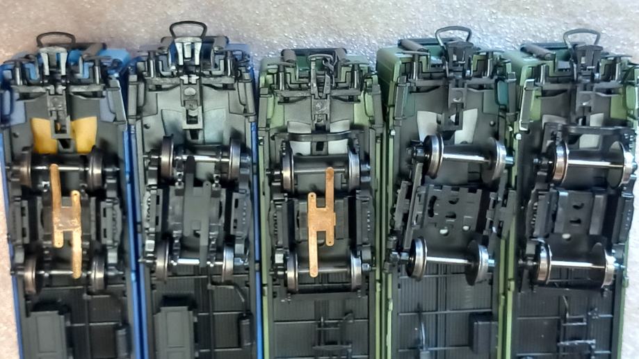 Štirje vagoni iz dveh različnih setov Jugoslavija expres. Vagoni so malo voženi in lepo ohranjeni, nimajo pa montiranih drobnih detajlov in nimajo pripadajočih vrečk z detajli.