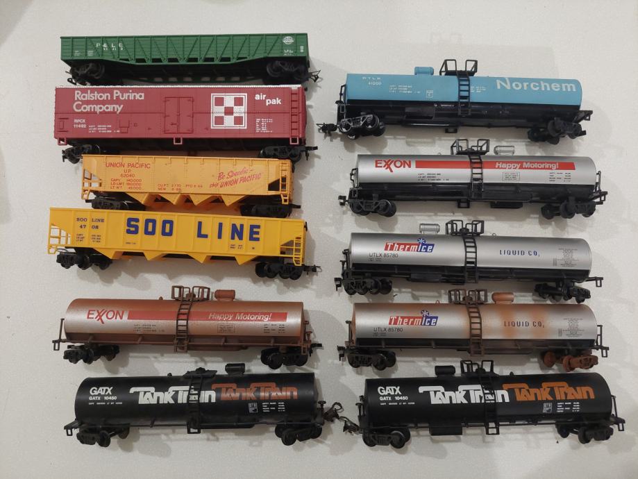 Večja količina Ameriških tovornih vagonov raznih železnic, proizvajalcev Mehano, Atlas, Rivarossi, Roco, in še kaj.