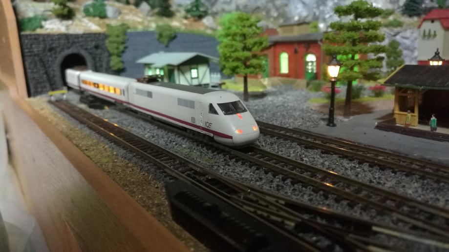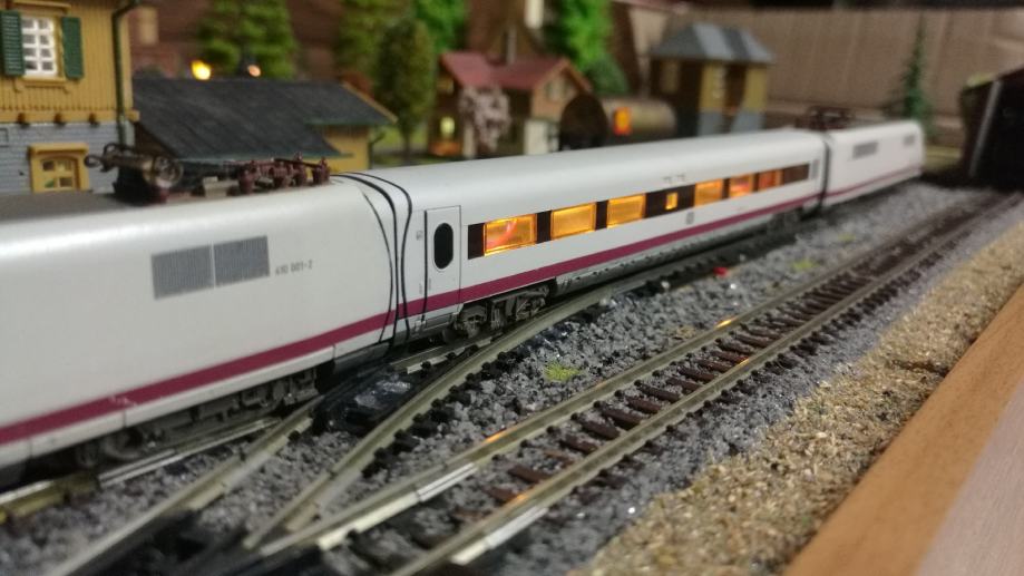 Luči belo - rdeče, vagon v eno smer osvetljen.
