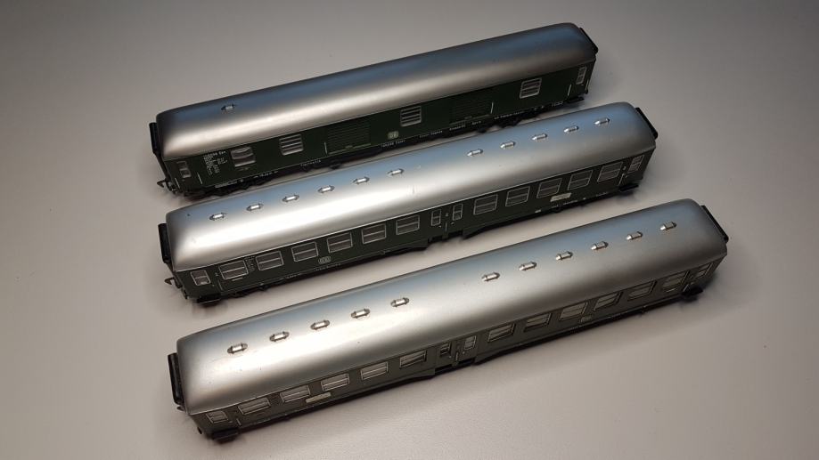 HO merilo potniški vagoni Fleischmann osvetljeni komplet št. 3 zeleni