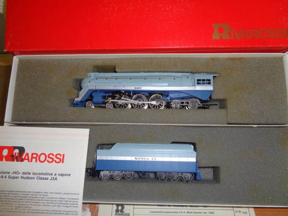 Lokomotiva Blue Goose ,Santa Fe ,BREZ MOTORJA ! od Rivarossi in dva potniška vagona iste garniture in iste znamke.Imel sem jih na leta v vitrini !