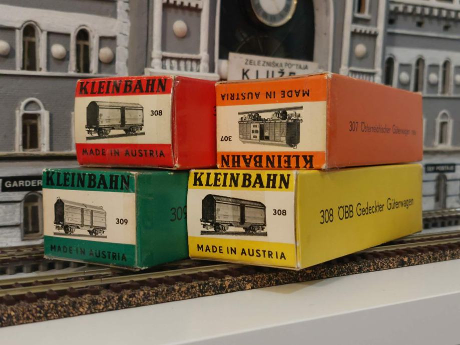4 Kleinbahn tovorni vagoni z premično streho v originalnih škatlah. Kot novi.