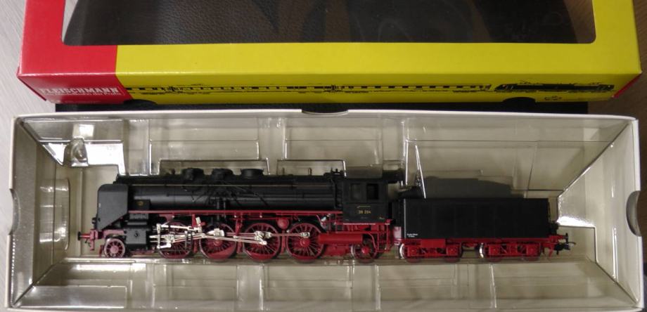 Lokomotiva Fleischmann BR39 - 4139. NEM standard za spojke, kratkospojni mehanizem med lokomotivo in tenderjem in na tenderju. Luči menjalne spredaj in zadaj. Možnost vgradnje generatorja dima. Adresa 3. Odlično ohranjena v originalni embalaži.