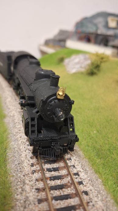 Parna lokomotiva, lepo ohranjenam, luč sveti v smeri vožnje. Lokomotiva je lepo vozna.