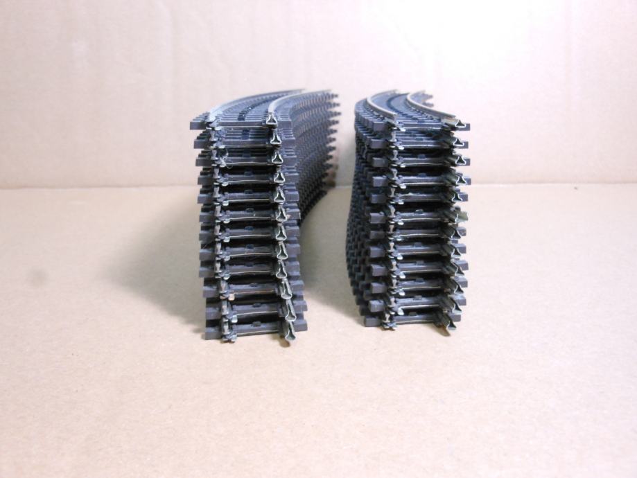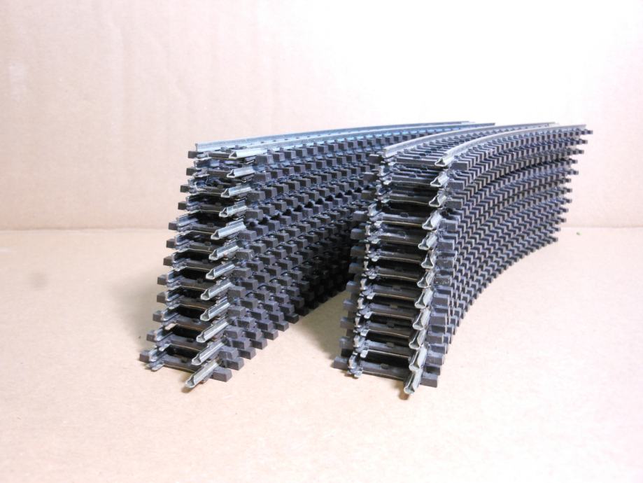 Ugodno prodam 24x Märklin krivi tiri R1 (kat. št.: 2221) za velikost H0. Tiri so še neuporabljeni in jih je za dva kroga. Idealna rešitev za izdelavo haliksa, če se gradi več nivojska maketa. Priporočena Märklinova cena je 3,59€/kom. moja cena je 2,50€/kom., vse krive tire skupaj pa dam za 60€.