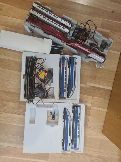 Prodam 2 kompleta, kot razvidno na sliki z vsemi tirnicami, cena posameznega 50e, skupaj 80e. Kontrolerja ne delata.