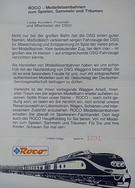 Vagon je limitirana izdaja (št.1231) in izdan ob 40 letnici DSG DB