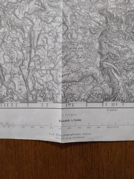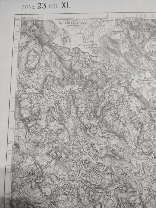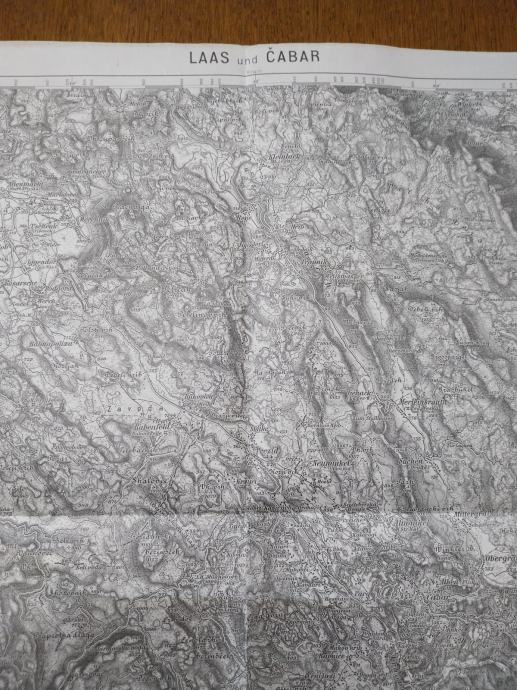 Prodajam star zemljevid Laas in Čabar. Del slovenskega ozemlja, Cerknica, Ribnica ,Notranjska.