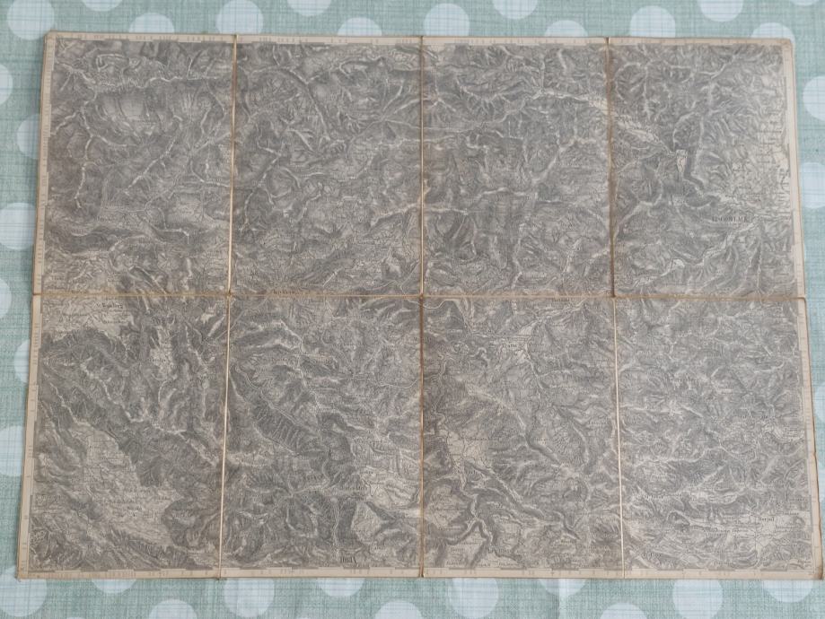 Prodam 4 stare vojaške,dobro ohranjene zemljevide R. Lechner (With Muller)iz časa Austroogrske monarhije.Zemljevidi,Spezialkarte,so iz 1880 in 1881 leta.Zemljevidi so iz naslednjih krajev: