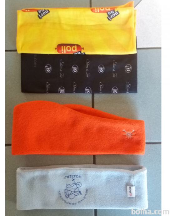 Prodam trak za ušesa iz flisa ( oranžna barva - flis, 56cm, blagovna znamka Brekka, kupljen v Hervisu, drugi je v modri barvi, flis, z napisom) in buff - multifunkcijska ruta, v rumeni in črni barvi (2 kosa), ki se uporablja na več načinov (kot šal, kapa, trak, maska,..) Cena za 1 kos 2 eur
