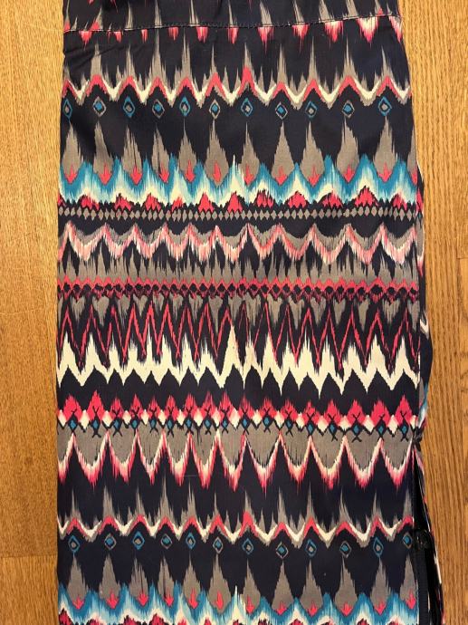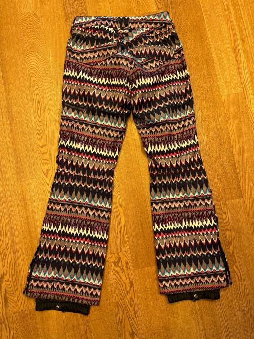 Prodam smučarske hlače velikost 38. So barvne (vzorec je bolje prikazan na zadnji sliki), tako da se lahko kombinirajo z enobarvno bundo v roza, beli ali modri ter so dobro ohranjene.