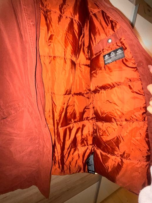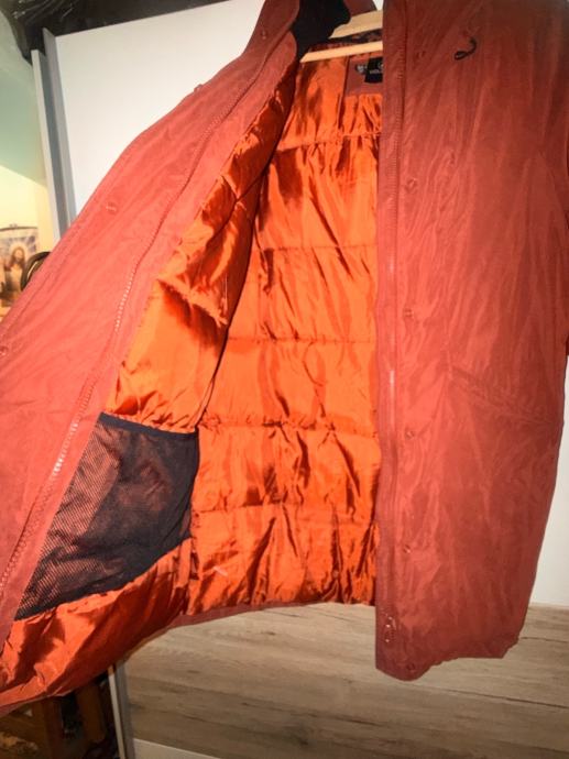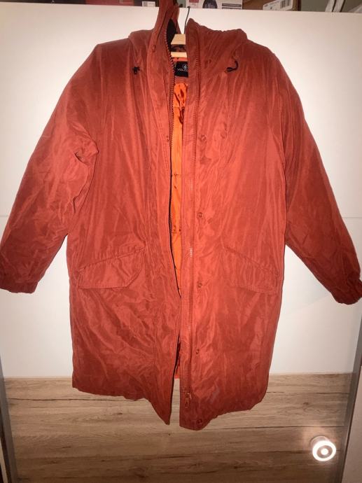 Ženska srednje dolga, puhasta parka ohlapnega kroja znamke Volcom, z visokim ovratnikom in nastavljivo kapuco. Zelo lepo ohranjena, brez poškodb, malo nošena.Ima skrito zapenjanje na zadrgo in gumbe, notranje žepe, zunanja dva za roke in skriti žep na prsnem delu.