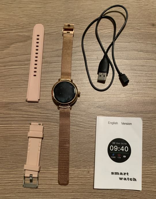 Nikoli nošena pametna ura rose gold barve z dodatnimi roza pasovi.