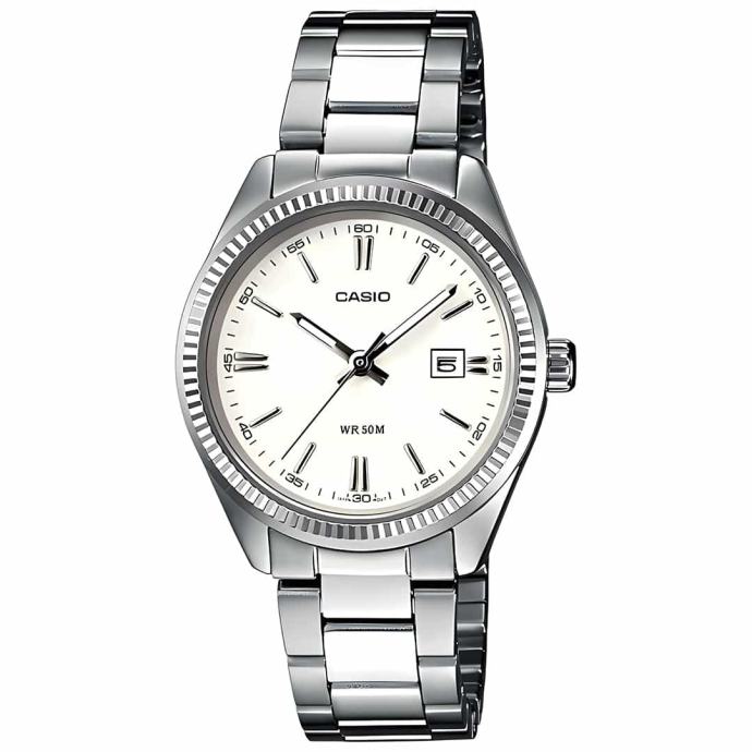 Ženska ročna ura Casio Collection LTP-1302D-7A1VDFŽenska ročna ura Casio Collection LTP-1302D-7A1VDF združuje klasično eleganco in zanesljivost, ki jo ponuja priznana blagovna znamka Casio. S srebrnim ohišjem in zapestnico iz nerjavečega jekla ter elegantno belo številčnico je popolna izbira za vsakodnevno uporabo in posebne priložnosti. Ta model izstopa s prefinjeno estetiko ter funkcionalnostjo, ki zagotavlja brezskrbno nošenje.Lastnosti in prednosti ure: Ohišje in zapestnica iz nerjavečega jekla: Trpežna konstrukcija v srebrni barvi zagotavlja eleganten videz in dolgotrajno obstojnost. Bela številčnica s srebrnimi detajli: Preprost, a prefinjen kontrast omogoča odlično berljivost in dodaja sodoben pridih. Mineralno steklo: Odporno na praske, ščiti številčnico in ohranja brezhiben videz. Vodoodpornost 5 ATM: Zasnovana za brezskrbno vsakodnevno nošenje. Prikaz datuma: Praktična funkcija na položaju 3. ure omogoča enostavno spremljanje koledarja.Tehnične lastnosti: Premer ohišja: 30 mm – idealna velikost za prefinjen in ženstven videz. Debelina ohišja: 9 mm – uravnotežena zasnova za udobno celodnevno nošenje. Material ohišja: Medenina z nerjavečim jeklom – kombinacija materialov za optimalno vzdržljivost. Vrsta stekla: Mineralno steklo – dodatna zaščita pred praskami in udarci. Mehanizem: Analogni kvarčni – natančno in zanesljivo merjenje časa. Teža: 70 g – lahka in udobna ura za celodnevno nošenje. Baterija: SR626SW – zagotavlja približno 3 leta delovanja brez menjave.Zakaj izbrati žensko ročno uro Casio Collection LTP-1302D-7A1VDF?Casio Collection LTP-1302D-7A1VDF je odlična izbira za vse, ki iščejo klasično in elegantno uro, primerno za vsako priložnost. Njen brezčasen dizajn v kombinaciji z nerjavečim jeklom in prefinjeno belo številčnico ustvarja sodoben videz, ki se ujema s katerim koli stilom. S funkcionalnostjo prikaza datuma, odpornostjo na praske in vodoodpornostjo ponuja popolno ravnovesje med slogom in praktičnostjo. Če želite prefinjeno in zanesljivo uro, je ta model Casio prava izbira!Ura ima 12-mesečno garancijo.V kolikor z nakupom niste zadovoljni, lahko ročno uro v roku 60 dni od prejema vrnete na naš naslov, mi pa vam bomo vrnili kupnino.Ročna ura je idealna tudi za darilo, saj jo prejmete v originalni Casio darilni škatlici.