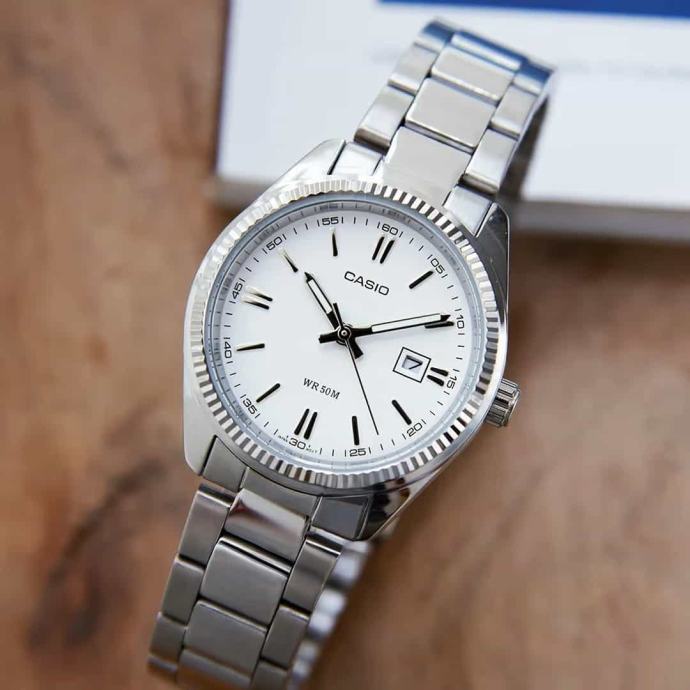 Ženska ročna ura Casio Collection LTP-1302D-7A1VDFŽenska ročna ura Casio Collection LTP-1302D-7A1VDF združuje klasično eleganco in zanesljivost, ki jo ponuja priznana blagovna znamka Casio. S srebrnim ohišjem in zapestnico iz nerjavečega jekla ter elegantno belo številčnico je popolna izbira za vsakodnevno uporabo in posebne priložnosti. Ta model izstopa s prefinjeno estetiko ter funkcionalnostjo, ki zagotavlja brezskrbno nošenje.Lastnosti in prednosti ure: Ohišje in zapestnica iz nerjavečega jekla: Trpežna konstrukcija v srebrni barvi zagotavlja eleganten videz in dolgotrajno obstojnost. Bela številčnica s srebrnimi detajli: Preprost, a prefinjen kontrast omogoča odlično berljivost in dodaja sodoben pridih. Mineralno steklo: Odporno na praske, ščiti številčnico in ohranja brezhiben videz. Vodoodpornost 5 ATM: Zasnovana za brezskrbno vsakodnevno nošenje. Prikaz datuma: Praktična funkcija na položaju 3. ure omogoča enostavno spremljanje koledarja.Tehnične lastnosti: Premer ohišja: 30 mm – idealna velikost za prefinjen in ženstven videz. Debelina ohišja: 9 mm – uravnotežena zasnova za udobno celodnevno nošenje. Material ohišja: Medenina z nerjavečim jeklom – kombinacija materialov za optimalno vzdržljivost. Vrsta stekla: Mineralno steklo – dodatna zaščita pred praskami in udarci. Mehanizem: Analogni kvarčni – natančno in zanesljivo merjenje časa. Teža: 70 g – lahka in udobna ura za celodnevno nošenje. Baterija: SR626SW – zagotavlja približno 3 leta delovanja brez menjave.Zakaj izbrati žensko ročno uro Casio Collection LTP-1302D-7A1VDF?Casio Collection LTP-1302D-7A1VDF je odlična izbira za vse, ki iščejo klasično in elegantno uro, primerno za vsako priložnost. Njen brezčasen dizajn v kombinaciji z nerjavečim jeklom in prefinjeno belo številčnico ustvarja sodoben videz, ki se ujema s katerim koli stilom. S funkcionalnostjo prikaza datuma, odpornostjo na praske in vodoodpornostjo ponuja popolno ravnovesje med slogom in praktičnostjo. Če želite prefinjeno in zanesljivo uro, je ta model Casio prava izbira!Ura ima 12-mesečno garancijo.V kolikor z nakupom niste zadovoljni, lahko ročno uro v roku 60 dni od prejema vrnete na naš naslov, mi pa vam bomo vrnili kupnino.Ročna ura je idealna tudi za darilo, saj jo prejmete v originalni Casio darilni škatlici.