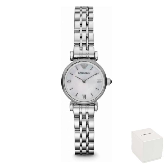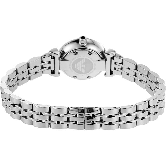 Ženska ročna ura Emporio Armani AR1763Ženska ročna ura Emporio Armani AR1763 je izjemno eleganten in stilsko dovršen izdelek, ki bo zagotovo pritegnil pozornost. Kljub svoji majhnosti ima ta čudovita ura številne značilnosti, ki jo postavljajo v ospredje prestižnih ženskih dodatkov.S svojim kompaktnim premerom številčnice le 22 mm je ta ura popolna za ženske, ki cenijo subtilnost in prefinjenost. Okrogla oblika ohišja ustvarja brezčasen šarm, ki se zlije s sodobnim dizajnom. Ne glede na slog ali velikost zapestja, bo ta ura zagotovo poudarila vašo osebnost.Čarobna lepota 'Mother of Pearl' materialaPosebnost te ure je nedvomno njena številčnica, ki je izdelana iz čudovitega "mother of pearl" materiala. Ta edinstven material ustvarja očarljivo igro barv in vzorcev, ki se prelivajo glede na kotne svetlobe. S svojo brezčasno lepoto prispeva dodaten sijaj in čar že tako izjemni uri.Mother of pearl je cenjen material, ki se včasih uporablja pri izdelavi številčnic prestižnih ur. Njegova najbolj prepoznavna značilnost je perlasta svetlikajoča se površina, ki spreminja barvo glede na različne kotne poglede. Ta material je znan po svoji vzdržljivosti, zaradi česar je tako zaželen. Mnogi proizvajalci prestižnih ur uporabljajo mother of pearl, da svojim uram dodajo intriganten učinek. Svetlikajoča površina materiala je izjemno zanimiva za pogled, saj se številčnica lahko zdi zelena z enega kota in turkizna z drugega. To je lepota tega materiala, ki ga ljubitelji ur izjemno cenijo.Trpežnost in eleganca v brezčasnem dizajnuNerjaveče jeklo, iz katerega je izdelano ohišje ure in pašček, zagotavlja trpežnost in dolgo življenjsko dobo. Z ionsko prevleko je material dodatno zaščiten pred praskami in oksidacijo, kar ohranja njegov sijaj in brezhiben videz. Pašček širine 10 mm omogoča, da se ura nežno ovije okoli vašega zapestja, ustvarjajoč popolno ravnovesje med eleganco in udobjem.Številčnica te čudovite ure je prava paleta elegancije. Majhne oznake ur v srebrni barvi omogočajo enostavno in hitro odčitavanje časa, hkrati pa dodajo pridih luksuza. Čeprav je majhna, je številčnica izjemno čitljiva in zlahka izstopa z izbranim dizajnom. Ne glede na to, ali greste na poslovno srečanje ali družaben dogodek, bo ta ženska ura AR1763 poudarila vašo sofisticiranost in stil.Ta vrhunska ura je opremljena z visokokakovostnim kvartznim mehanizmom, ki zagotavlja natančno in zanesljivo delovanje. Poleg tega pa ta ura ni namenjena samo temu, da boste vedno vedeli, koliko je ura, ampak bo tudi popoln dodatek k vašemu izgledu. Ne glede na priložnost, bo ta brezčasna Emporio Armani ženska ura AR1763 pritegnila pozornost s svojim izjemnim dizajnom in se popolnoma ujemala s stilom vsake ženske.Ura ima oznako vodotesnosti 30 metrov (3 ATM), kar pomeni, da je primerna za vsakdanjo uporabo.Ura ima 12 mesečno garancijo.V kolikor z nakupom niste zadovoljni, lahko ročno uro v roku 60-ih dni od prejema vrnete na naš naslov, mi pa vam bomo vrnili kupnino.Paket vsebuje: Ročno uro Emporio Armani AR1763 Originalno embalažo Navodila Certifikat o originalnem izdelkuRočna ura je idealna tudi za darilo, saj jo prejmete v originalni Emporio Armani darilni škatlici.