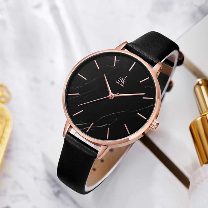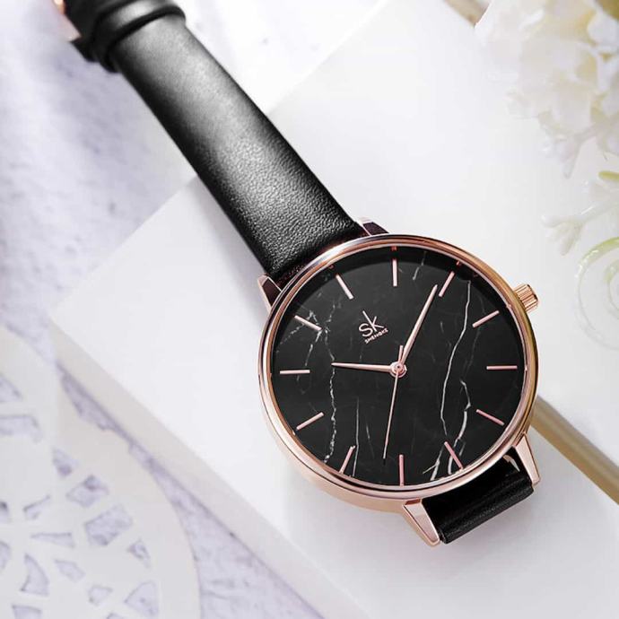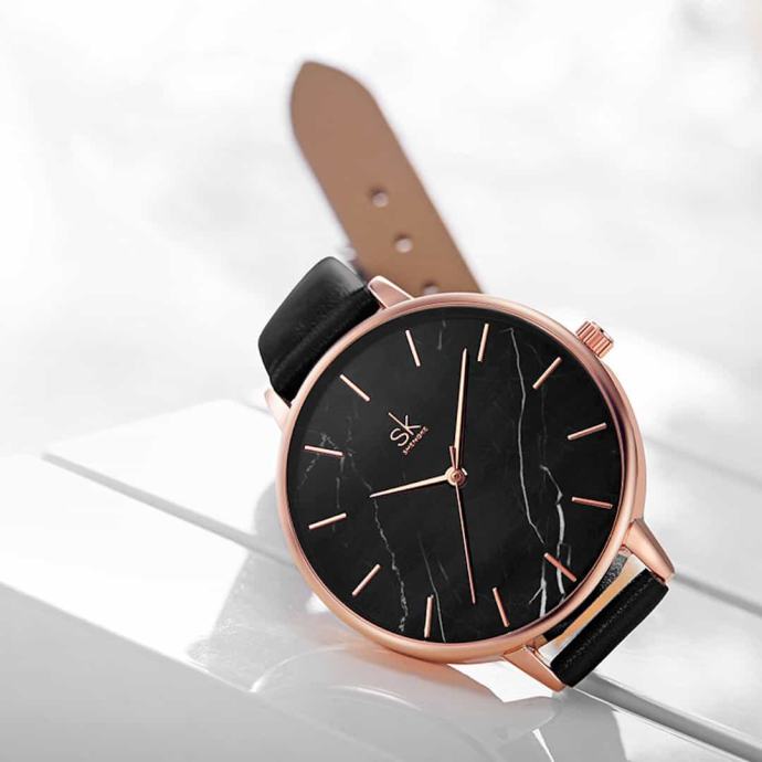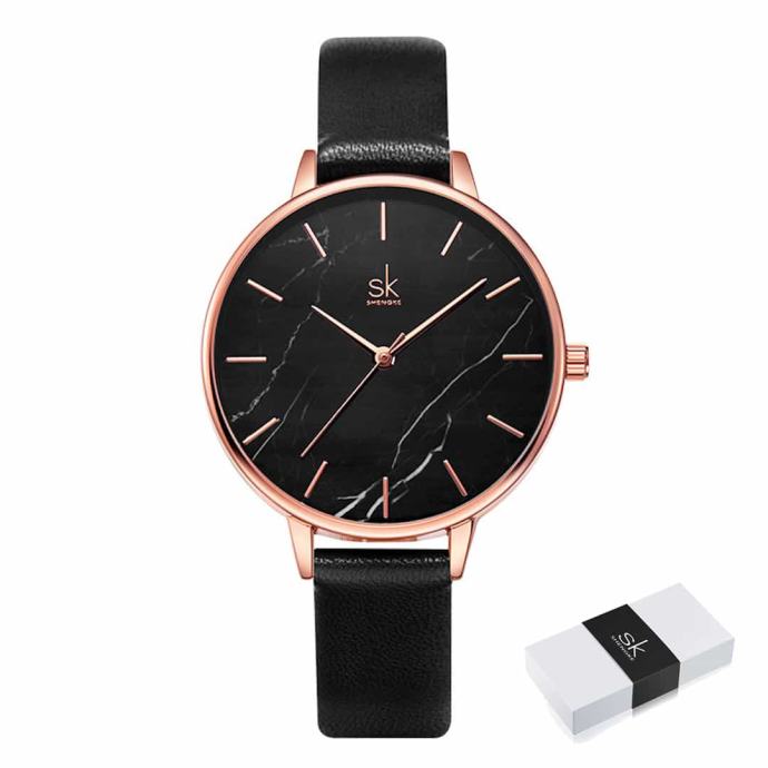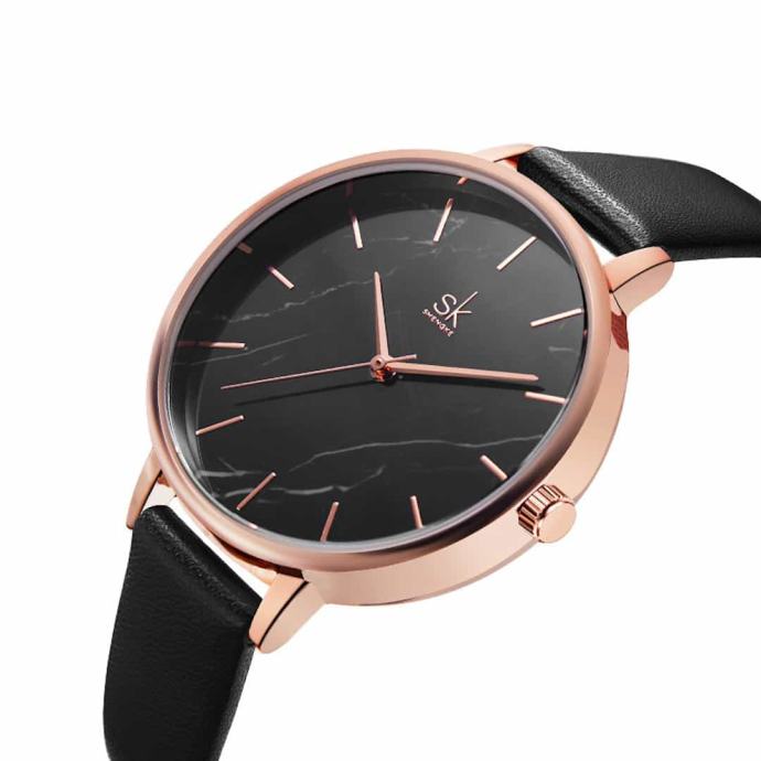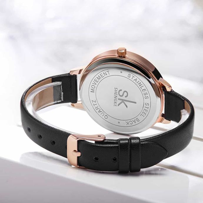 Ženska ročna ura SK Shengke Marble BlackOdkrijte brezčasno lepoto in prefinjenost z žensko ročno uro SK Shengke Marble Black. Ta izjemna ura je zasnovana za ženske, ki cenijo eleganco in vrhunsko izdelavo, združeno v enem kosu. Ženska ročna ura SK Shengke Marble Black izstopa s čudovito črno številčnico, ki spominja na marmor. Elegantni zlati kazalci in subtilne oznake ur dopolnjujejo prefinjen videz, ki izžareva luksuz in prefinjenost. Ta ženska ročna ura je popolna za vse priložnosti, od vsakodnevnega nošenja do posebnih dogodkov.Ura je opremljena s črnim usnjenim paščkom, ki zagotavlja udobje in vzdržljivost. Njegova nevtralna barva se popolnoma ujema z zlato številčnico, kar ustvarja eleganten in sofisticiran videz.Ohišje ure je izdelano iz rožnato zlatega nerjavečega jekla, kar zagotavlja trajnost in odpornost na vsakodnevno obrabo. Zadnji del ohišja je prav tako izdelan iz nerjavečega jekla, kar prispeva k splošni trpežnosti in kakovosti ure. Ura SK Shengke Marble Black uporablja zanesljiv kvarčni mehanizem, ki zagotavlja natančnost.SK Shengke Marble Black je več kot le ura – je izjava o vašem prefinjenem okusu in občutku za stil. Nosite jo ob vsaki priložnosti in dovolite, da postane vaš najljubši modni dodatek. Ročne ure za ženske Shengke so znane po svoji eleganci in kakovosti, in ta model ni izjema.Ne čakajte več! Dodajte pridih prefinjenosti svojemu vsakdanjiku z žensko ročno uro SK Shengke Marble Black. Naročite zdaj in postanite lastnica te čudovite ure, ki bo zagotovo obogatila vašo zbirko modnih dodatkov. Iščete poceni ženske ročne ure Shengke? Ta model ponuja izjemno vrednost za svojo ceno, kar ga naredi popolno izbiro za vse, ki iščejo kakovost in stil po ugodni ceni.Ura ima 12 mesečno garancijo.V kolikor z nakupom niste zadovoljni, lahko ročno uro v roku 60-ih dni od prejema vrnete na naš naslov, mi pa vam bomo vrnili kupnino.Ročna ura je idealna tudi za darilo, saj jo prejmete v elegantni darilni škatlici.