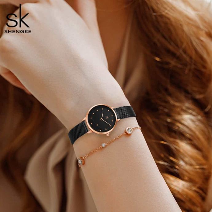Ženska ročna ura SK Shengke Radiance BlackOdkrijte brezčasno eleganco in sodobno prefinjenost z žensko ročno uro SK Shengke Radiance Black. Ženska ročna ura SK Shengke Radiance Black je čudovit kos in popolna izbira za vsako žensko, ki želi izžarevati prefinjenost in stil v vsakem trenutku.Ženska ročna ura SK Shengke Radiance Black izstopa z očarljivo in minimalistično črno številčnico. Elegantni kazalci in subtilne oznake ur dopolnjujejo prefinjen videz, ki izžareva luksuz in prefinjenost. Ta ženska ročna ura je popolna za vse priložnosti, od vsakodnevnega nošenja do posebnih dogodkov.Ura je opremljena z vrhunskim kovinskim paščkom v črni barvi, ki zagotavlja udobje in vzdržljivost. Pašček se popolnoma ujema s številčnico, kar ustvarja čudovit enoten videz.Ohišje ure je izdelano iz nerjavečega jekla, kar zagotavlja trajnost in odpornost na vsakodnevno obrabo. Zadnji del ohišja je prav tako izdelan iz nerjavečega jekla, kar prispeva k splošni trpežnosti in kakovosti ure. Ura SK Shengke Radiance Black uporablja zanesljiv kvarčni mehanizem, ki zagotavlja natančnost.SK Shengke Radiance Black je več kot le ura – je izjava o vašem prefinjenem okusu in občutku za stil. Nosite jo ob vsaki priložnosti in dovolite, da postane vaš najljubši modni dodatek. Ročne ure za ženske Shengke so znane po svoji eleganci in kakovosti, in ta model ni izjema.Ne čakajte več! Dodajte pridih prefinjenosti svojemu vsakdanjiku z žensko ročno uro SK Shengke Radiance Black. Naročite zdaj in postanite lastnica te čudovite ure, ki bo zagotovo obogatila vašo zbirko modnih dodatkov. Iščete poceni ženske ročne ure Shengke? Ta model ponuja izjemno vrednost za svojo ceno, kar ga naredi popolno izbiro za vse, ki iščejo kakovost in stil po ugodni ceni.Ura ima 12 mesečno garancijo.V kolikor z nakupom niste zadovoljni, lahko ročno uro v roku 60-ih dni od prejema vrnete na naš naslov, mi pa vam bomo vrnili kupnino.Ročna ura je idealna tudi za darilo, saj jo prejmete v elegantni darilni škatlici.