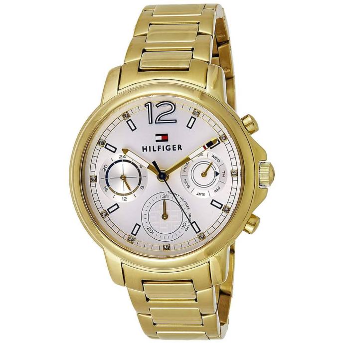 Ženska ročna ura Tommy Hilfiger 1781742Ženska ročna ura Tommy Hilfiger 1781742 je elegantna in moderna ura, zasnovana za sodobne ženske, ki cenijo stil in funkcionalnost. S svojim zlatim ohišjem in kovinskim paščkom ta ura izstopa kot prestižen modni dodatek, ki bo dopolnil vsako garderobo. Michael Kors 1781742 združuje klasični analogni dizajn s praktičnimi funkcijami, kot so prikaz datuma, dneva v tednu in 24-urni format, kar jo naredi idealno za vsakodnevno uporabo.Lastnosti in prednosti ure: Kovinsko ohišje in pašček v zlati barvi: Ohišje in pašček sta narejena iz nerjavečega jekla, kar zagotavlja trpežnost in dolgo življenjsko dobo ure. Zlata barva dodaja pridih elegance in prestiža. Praktične funkcije: Ura prikazuje datum, dan v tednu in ima 24-urni format, kar povečuje njeno uporabnost in funkcionalnost za vsakodnevno uporabo. Vodoodpornost 3 ATM: Ura je vodoodporna do 30 metrov, kar pomeni, da je primerna za vsakodnevno uporabo, kot je umivanje rok ali dež, vendar ni primerna za plavanje. Kovinski pašček: Kovinski pašček je prilagodljiv, saj omogoča enostavno nastavitev velikosti z odstranitvijo členov, kar zagotavlja udobno prileganje zapestju.Tehnične lastnosti: Velikost ohišja: 38 mm – srednje veliko ohišje, ki je primerno za različne velikosti zapestij in dodaja sodoben videz. Debelina ohišja: 10 mm – zmerna debelina ohišja, ki omogoča udobno nošenje in eleganten profil, primeren za različne priložnosti. Material ohišja: Nerjaveče jeklo (316L) – visokokakovostno nerjaveče jeklo zagotavlja odpornost proti praskam in obrabi, kar omogoča dolgotrajno uporabo. Pašček: Kovinski – trpežen kovinski pašček z zlato prevleko, ki zagotavlja udobje in stabilnost na zapestju. Teža: 95 g – srednje težka ura, ki zagotavlja udobje pri nošenju skozi celoten dan. Analogni mehanizem: Klasični analogni prikaz omogoča preprosto in natančno odčitavanje časa.Zakaj izbrati žensko ročno uro Tommy Hilfiger 1781742?Ženska ročna ura Tommy Hilfiger 1781742 je odlična izbira za vse, ki iščejo elegantno in funkcionalno uro z modernim pridihom. S svojim zlatim ohišjem in praktičnimi funkcijami ta ura združuje eleganco in uporabnost, kar jo naredi primerno za vsako priložnost. Njen klasični dizajn in kakovostni materiali zagotavljajo, da bo ostala zanesljiv modni dodatek za dolga leta. Izberite Tommy Hilfiger 1781742 in dodajte svojemu videzu kanček luksuza in praktičnosti!Ura ima 12 mesečno garancijo.V kolikor z nakupom niste zadovoljni, lahko ročno uro v roku 60-ih dni od prejema vrnete na naš naslov, mi pa vam bomo vrnili kupnino.Ročna ura je idealna tudi za darilo, saj jo prejmete v originalni Tommy Hilfiger darilni škatlici.