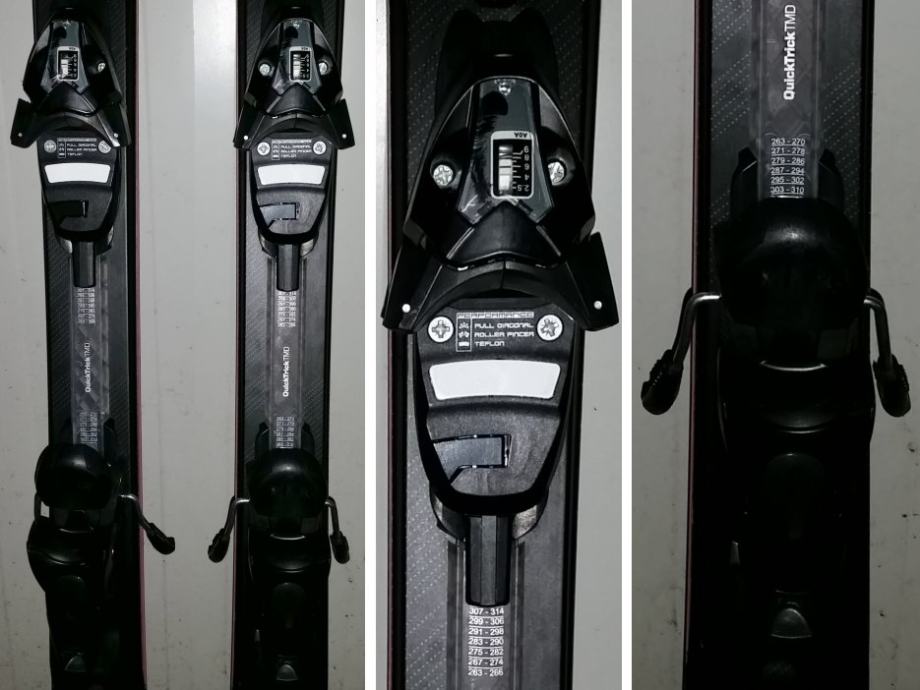 širine: 130 80 100 mm, nastavitev glave in pete vezi od 2.5 do 9 (do 90 kg, zdaj nastavljeno na 60 kg), dolžina vpetja pancarja je zdaj nastavljena na 30.7 cm (št. 40-41).