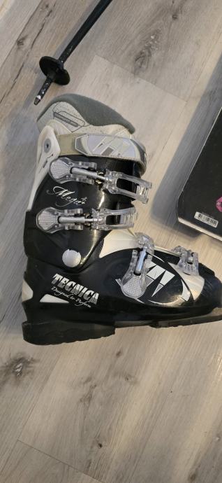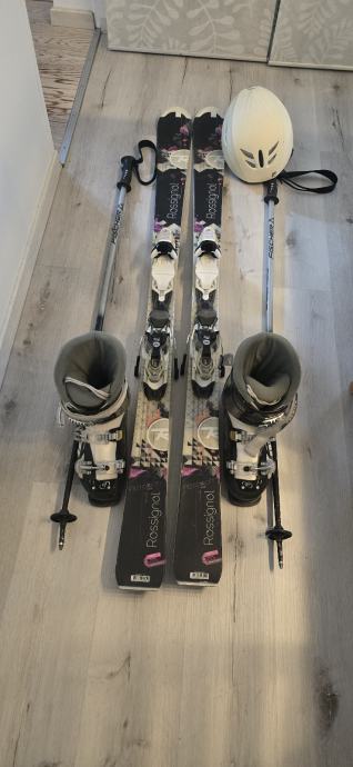 Prodam kompletno rabljeno žensko smučarsko opremo, rabljeno 3 sezone po 5 dni, in sicer smuči Rossignol, dolžine 154 cm, palice dolžine 120 cm, smučarske čevlje Tehnica, velikost 39 in čelada Nevica, velikost M