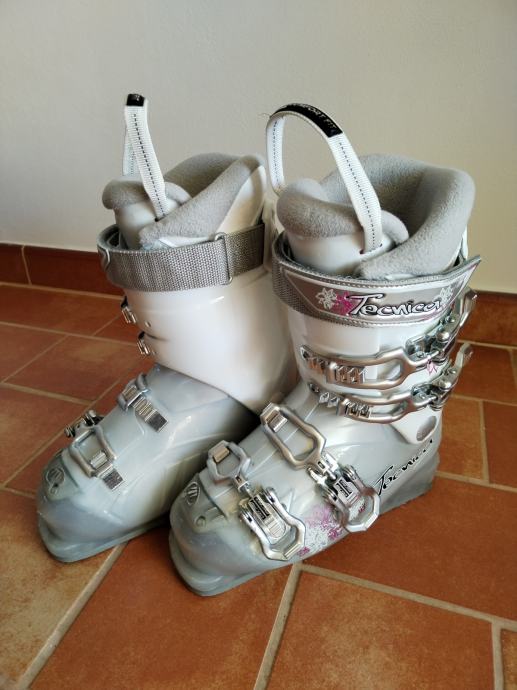 Prodam malo rabljene in zelo lepo ohranjene smučarske čevlje priznane znamke TECNICA velikosti 235 / 37 - 37,5. Čevlji imajo kovinske zaponke in so bili vedno ustrezno skladiščni. Primerni so za rekreativne smučarke / mladino.