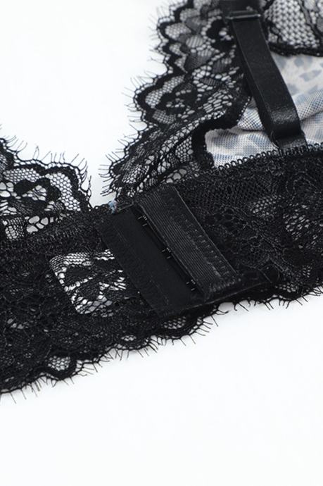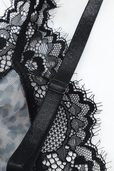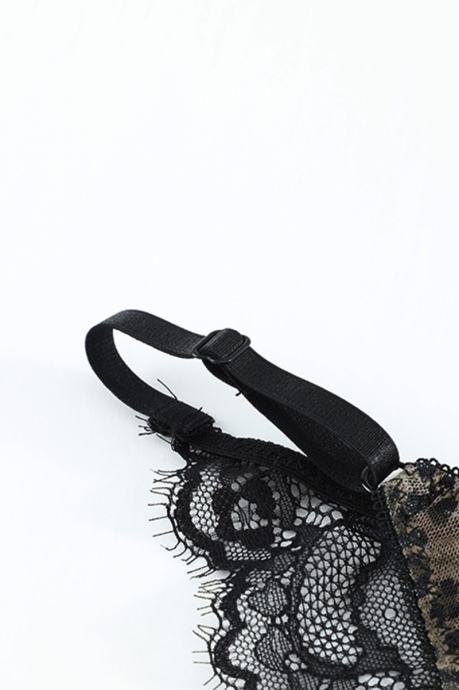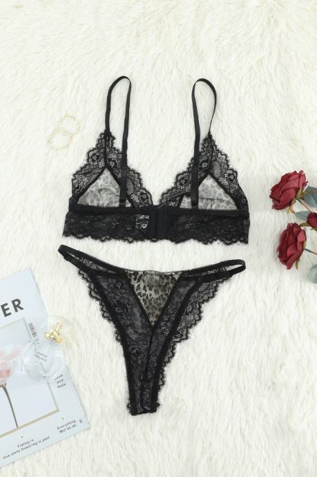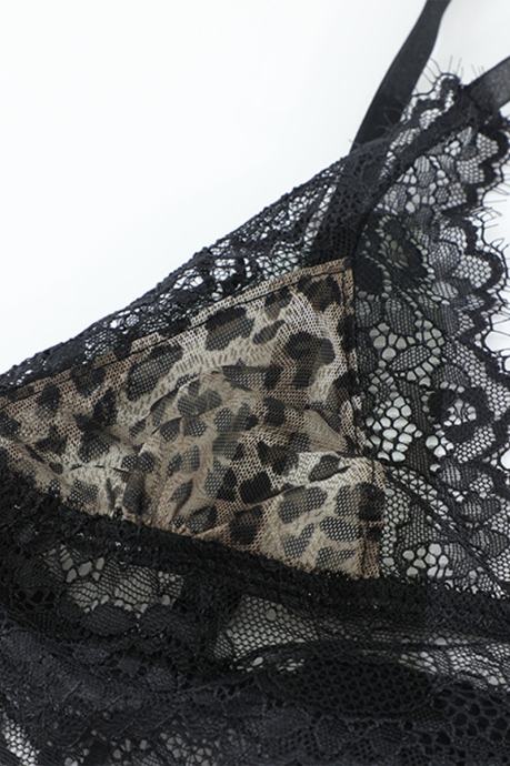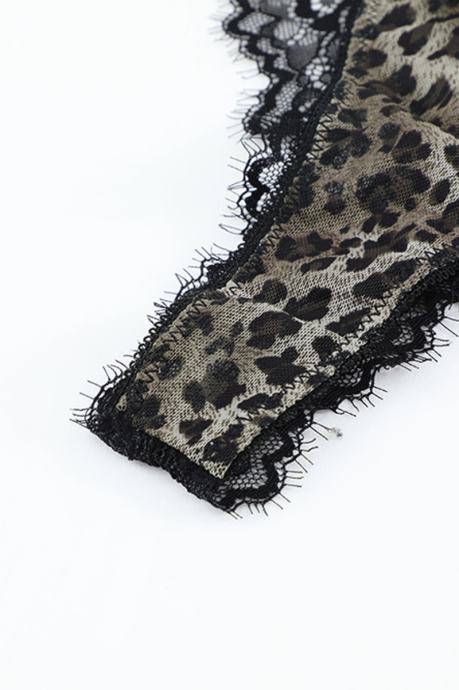Rawr! Prebudite zver v sebi! Vroč komplet v leopardjem vzorcu je sestavljen iz nedrčka in tanga hlačk, ter je v kombinaciji čutne čipke z mrežastim materialom in podlogo v leopardjem vzorcu. Nedrček ima nastavljive naramnice, obrobljen je s črno čipko in ima širok sistem zapiranja zadaj. Tanga hlačke so visokega in ženstvenega kroja, ki lepo poudari vašo zadnjico in vas naredi izjemno seksi. - Dvodelni komplet - Nedrček in tanga hlačke - Čuten in ženstveni kroj - Leopardji vzorec s kombinacijo črne čipke - Mehak in udoben material - Nastavljive naramnice nedrčka - Visok kroj tanga hlačk