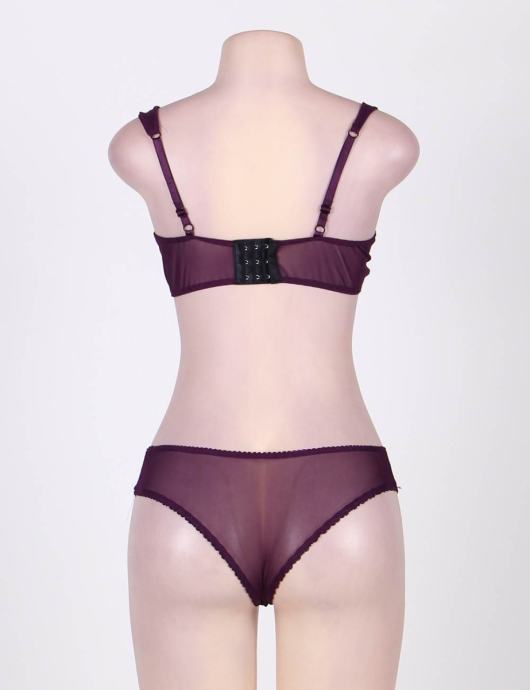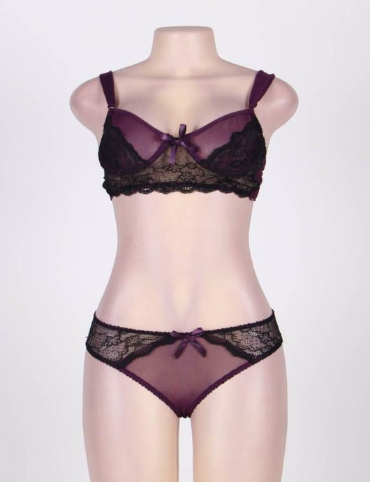Privoščite si zapeljivo perilo in koketirajte z izbrancem. Komplet Ohyeah R80273 ima eleganten dizajn iz mešanice črne čipke ter prosojne vijolične tkanine. Komplet vključuje nedrček z rahlo podprtimi košaricami ter klasične hlačke. Lahkoten, elastičen material poskrbi za popolno udobje, medtem, ko detajli ustvarjajo zelo lep videz perila. Nedrček ima nastavljive naramnice ter večstopenjsko zapenjanje za popolno prilagoditev.