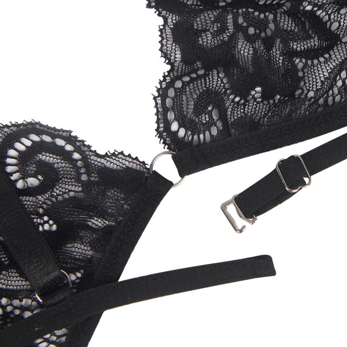 Zapeljite ga s črno čipko, ki se ji zagotovo ne bo mogel upreti. 3-delni komplet Ohyeah R81138 je komplet spodnjega erotičnega perila, ki ga nujno morate imeti v svoji zbirki. Z njim boste zagotovo očarale kogarkoli boste želele, saj je izdelan in črnega čipkasto prosojnega materiala, ki pokaže in skrije ravno prav. Kroj kompleta laska vsakršni ženski postavi in izpostavi seksi atribute. Črn nedrček z nepodloženimi košaricami ima nastavljive naramnice in obseg. Obseg je prav tako nastavljiv pri tanga hlačkah in pasu za nogavice. Tako si lahko nastavite želen obseg in dolžino ter si prilagodite svojim seksi oblinam. Nihče se vam ne bo mogel upreti! Mehek in udoben material Kroj, ki izpostavi vaše atribute Črna čipka Prosojen material 3-delni komplet Nastavljiv obseg nedrčka, tanga hlačk in pasu za nogavice