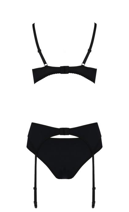 Čudovita kombinacija čipke za čudovite obline. Tridelni komplet Nea vas bo zagotovo navdušil. Nežen material s kombinacijo elegantne čipke, ki je postavljena na prava mesta za preusmerjanje pozornosti. Mehek nedrček z nastavljivimi naramnicami pokaže ravno prav, hlačke so izjemno mehke in udobne za nošenje ter pas za nogavice, ki ima nastavljive trakove. Komplet, ki bo poudaril vaše čare. Tridelni komplet Elegantna čipka Mehek in udoben material Nedrček z nastavljivimi naramnicami Nogavice niso priložene