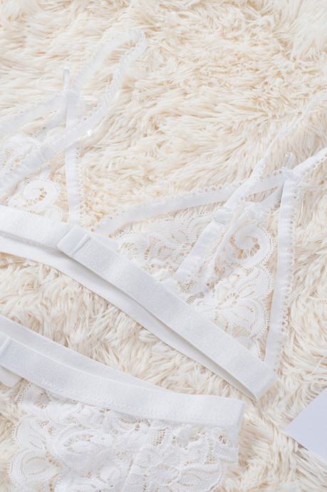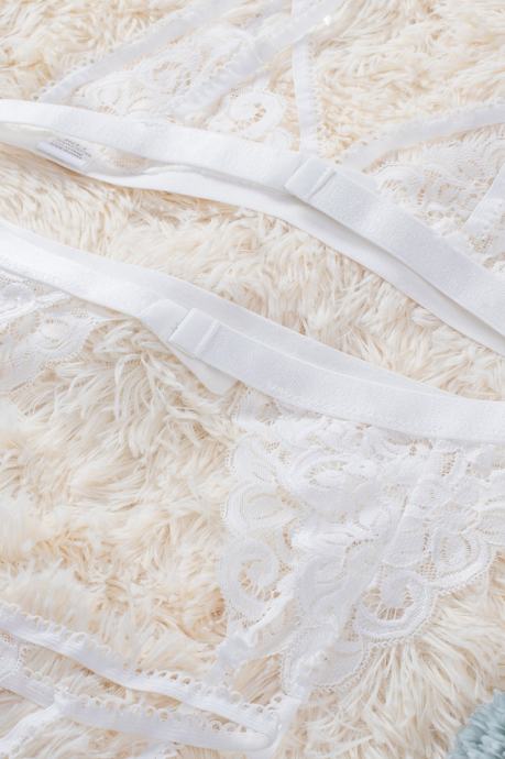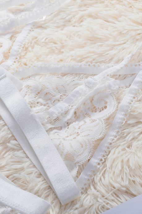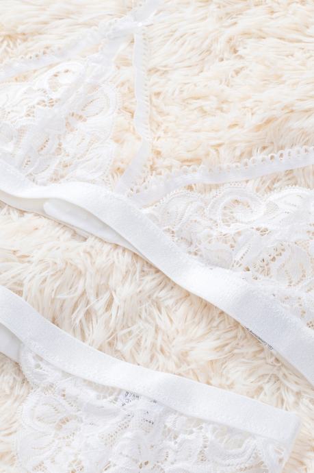 Nebeško bela za nebeško telo. Seksi komplet Serena je na voljo v beli barvi in vključuje nedrček z nastavljivimi naramnicami, tanga hlačke in pasom za nogavice. Izdelan je iz nežne čipke in je okrašen s pentljami za še bolj seksi videz. Nedrček ima mehke košarice in je obrobljen s trakom, ki poudari vaše oprsje. Elastičen material omogoča, da nežno objame vaše obline in izpostavi le najboljše. Tri delni komplet Nedrček z nastavljivimi naramnicami Tanga hlačke Pas za nogavice Mehak in udoben material Raztegljiva tkanina Bela čutna čipka