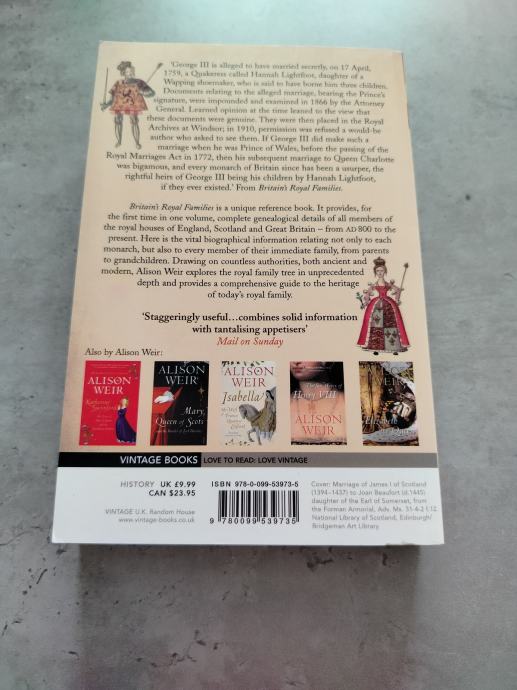 'George III is alleged to have married secretly, on 17th April, 1759, a Quakeress called Hannah Lightfoot, daughter of a Wapping shoemaker, who is said to have borne him three children. Documents relating to the alleged marriage, bearing the Prince's signature, were impounded and examined in 1866 by the Attorney General. Learned opinion at the time leaned to the view that these documents were genuine. They were then placed in the Royal Archives at Windsor; in 1910, permission was refused a would-be author who asked to see them. If George III did make such a marriage when he was Prince of Wales, before the passing of the Royal Marriages Act in 1772, then his subsequent marriage to Queen Charlotte was bigamous, and every monarch of Britain since has been a usurper, the rightful heirs of George III being his children by Hannah Lightfoot, if they ever existed.' From Britain's Royal Families Britain's Royal Families is a unique reference book. It provides, for the first time in one volume, complete genealogical details of all members of the royal houses of England, Scotland and Great Britain - from 800AD to the present. Here is the vital biographical information relating not only to each monarch, but also to every member of their immediate family, from parents to grandchildren. Drawing on countless authorities, both ancient and modern, Alison Weir explores the royal family tree in unprecedented depth and provides a comprehensive guide to the heritage of today's royal family.