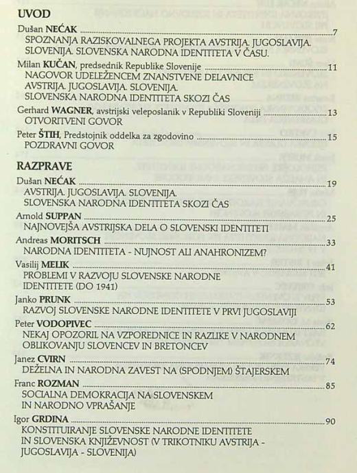 AVSTRIJA. JUGOSLAVIJA. SLOVENIJA. SLOVENSKA NARODNA IDENTITETA SKOZI Č