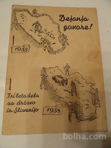 Knjiga DEJANJA GOVORE! 1935 - 1938, TRI LETA DELA ZA DRŽAVO SLOVENIJO, IZDALO BANOVINSKO TAJNIŠTVO JRZ V LJUBLJANI, broširana, soldino ohranjena.