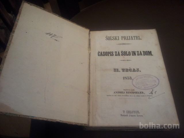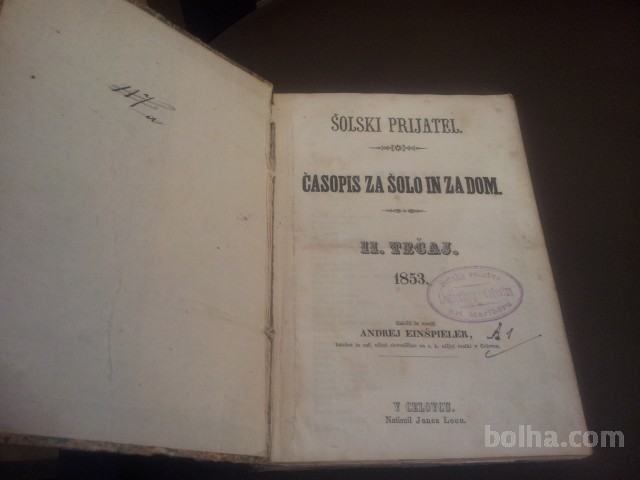 - 167 let stara slovenska knjiga ŠOLSKI PRIJATEL , knjiga iz 1853 leta ŠOLSKI PRIJATELJ,ČASOPIS ZA ŠOLO IN DOM (ANDREJ EINŠPIELER - 19,99 EVR