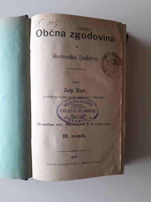 JOSIP STARE, OBČNA ZGODOVINA ZA SLOVENSKO LJUDSTVO, III. ZVEZEK, 1878