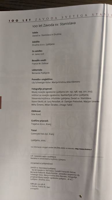 France M. Dolinar: Sto let zavoda sv. Stanislava (4000g)