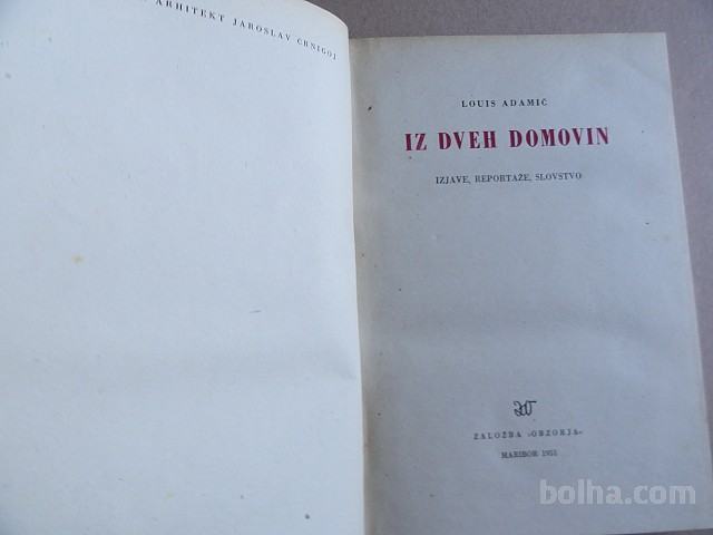 Knjiga IZ DVEH DOMOVIN, IZJAVE-REPORTAŽE-SLOVSTVO, LOUIS ADAMIČ, ZALOŽBA OBZORJA MARIBOR 1951, trde platnice, dobro ohranjena.