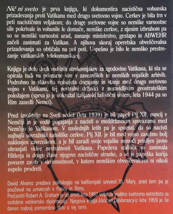 NIČ NI SVETO: Nacistično vohunjenje Vatikana 1939-1945, D. Alvarez & R