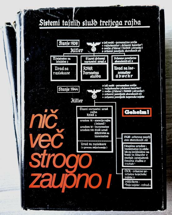 Prodam knjigo NIČ VEČ STROGO ZAUPNO : NACISTIČNE OBVEŠČEVALNE SLUŽBE IN NJIHOVA DEJAVNOST PRI NAS 1 - 2, K. F. / Marko Selan, Partizanska knjiga 1978, trda vezava. 185 #2